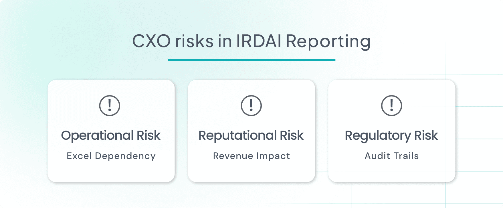 Second, regulatory change compounds the problem. Every time IRDAI tweaks a format, introduces a new disclosure, or tightens a timeline, existing Excel models need to be reworked. This rework typically happens under time pressure, often near filing deadlines, and can cascade into multiple dependent files. The result is predictable. Stress across finance, actuarial and compliance teams, late‑night reconciliations, and heightened exposure for the CEO, CFO and Legal/Compliance heads when something slips.